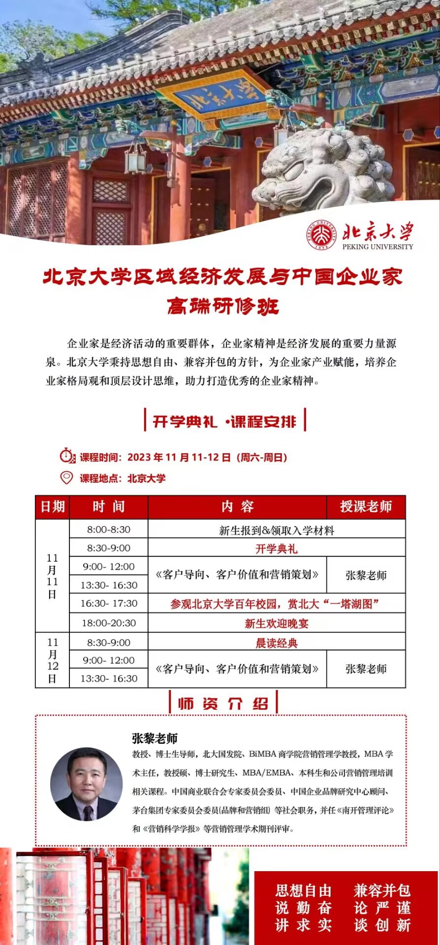 北京大學(xué)區(qū)域經(jīng)濟(jì)發(fā)展與中國(guó)企業(yè)家高端研修班2023年11月開(kāi)課通知